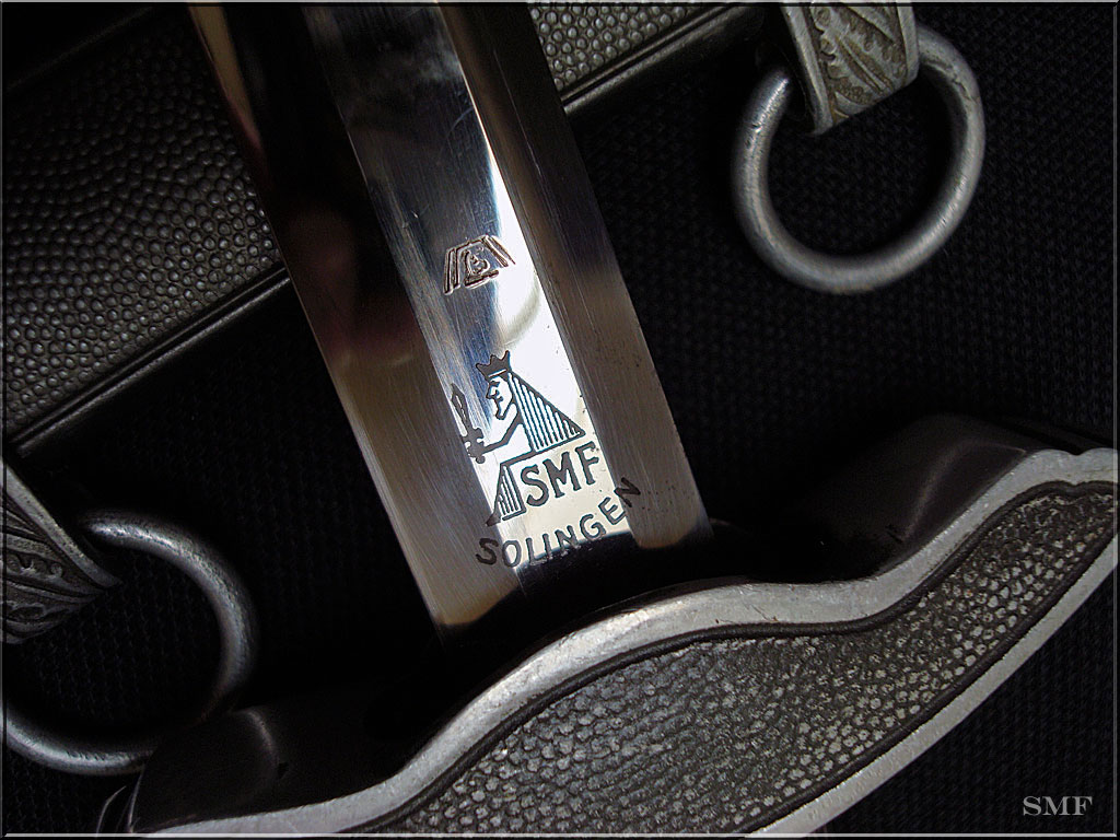 SMF - Beautiful factory burnishing - SMF fittings & scabbard - Near 100% gilding on pommel - Nickel plated blade with Waffen-Ampt